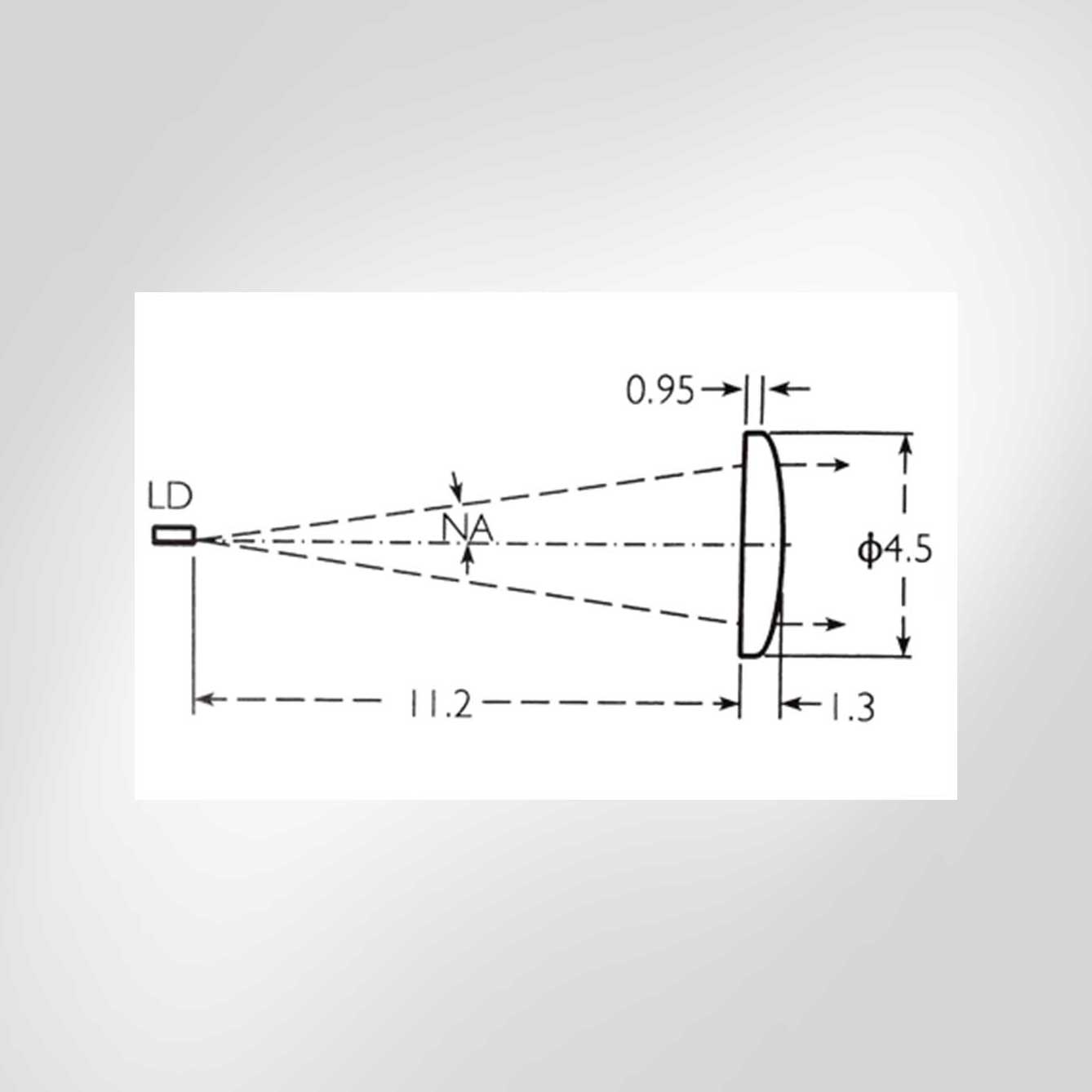 The SELFOC® Plano-Convex Lens features a curved surface on one end facet, designed to reduce spherical aberration in the lens. The result is an increased acceptance angle, smaller spot size as shown in the drawing above. The most common application is coupling from a light source, such as a laser diode or LED, into an optical fiber.